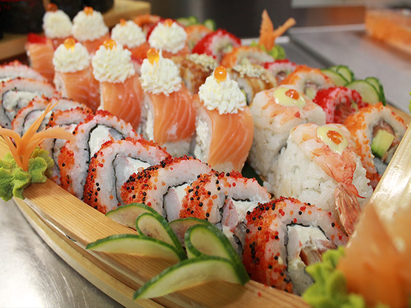 Кафе «Манго» – это сочетание экзотики Востока, роскоши и изыска кулинарных шедевров японской и тайской кухни, пикантность которой придаёт король тропиков – МАНГО.